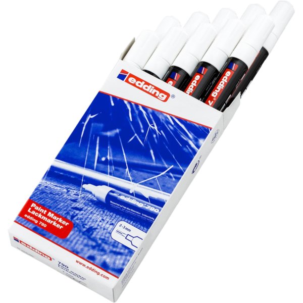 Lakový permanentní popisovač s pigmentovým inkoustem Vysoká krycí schopnost Odolný proti vodě na většině povrchů Bez přídavku toluenu/xylolu Tělo z umělé hmoty Šíře stopy: 2,0 - 3,0 mm (kulatý hrot) …