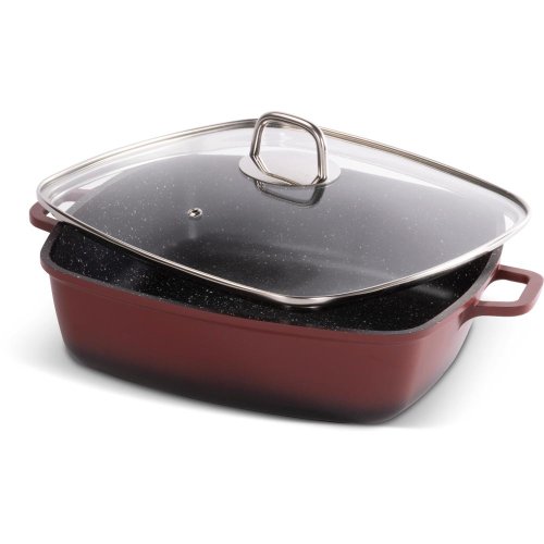 Vyrobeno z vysoce odolného hliníku Nádobí opatřeno vnitřním nepřilnavým povrchem odolným proti oděru a připalování, silným dnem a velmi elegantními úchyty pro větší bezpečnost, funkčnost a pohodlí Poklice z odolného skla a otvorem pro páru pro dokonalou kontrolu vaření Nepřilnavý materiál bez použití PFOA (nevypařují se žádné toxické látky při přehřátí) teplotně vysoce odolný, zabraňuje připalování, zdravé vaření Snadná údržba a čištění