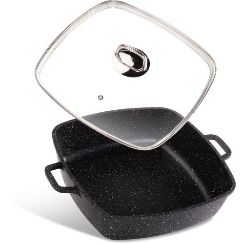 Vyrobeno z vysoce odolného hliníku Nádobí opatřeno vnitřním nepřilnavým povrchem odolným proti oděru a připalování, silným dnem a velmi elegantními úchyty pro větší bezpečnost, funkčnost a pohodlí Poklice z odolného skla a otvorem pro páru pro dokonalou kontrolu vaření Nepřilnavý materiál bez použití PFOA (nevypařují se žádné toxické látky při přehřátí) teplotně vysoce odolný, zabraňuje připalování, zdravé vaření Snadná údržba a čištění