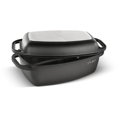 Vyrobeno z vysoce odolného hliníku. Kvalitní hliníkový litý pekáč a grilovací víko s vnitřním nepřilnavým povrchem odolným proti připalování, opatřen silným dnem u obou nádob. Grilovací víko má speciální tvar vnitřního dna. Vynikající tepelná vodivost. Úspora energie a času. Snadná údržba a čištění.