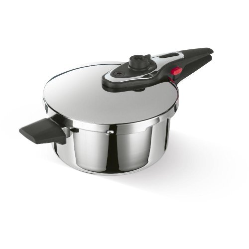 Tlakový hrnec 4L . Tento tlakový hrnec je vyroben z vysoce kvalitní nerezavějící oceli 18/10 a velmi odolného plastu. Je vybaven masivní rukojetí pro pohodlné a bezpečné uchopení. Čtyři pojistky, indikátor tlaku a dvojí bezpečnostní ventil zajišťují maximální bezpečnost při vaření. Sendvičové dno umožňuje rovnoměrné rozložení tepla, což zkracuje dobu vaření a šetří energii. Moderní design hrnce dodá vaší kuchyni elegantní vzhled.