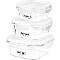 Praktická a spolehlivá sada dóz pro skladování a přenášení potravin Vyrobena z odolného skla a plastu s kvalitním silikonovým těsněním víčka – vzduchotěsné a vodotěsné Ventil pro odvětrávání a odvlhčování potravin Potraviny zůstávají déle čerstvé, udržují si své aroma, při manipulaci nevytékají Vhodné do ledničky, mrazničky, mikrovlnné trouby a do myčky. -20°C až 110°C Upozornění: s výrobky ze skla zacházejte opatrně, v případě praskliny výrobek nepoužívejte