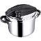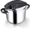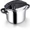 Tlakový hrnec 6l . Tlakový hrnec Pression je vyroben z prvotřídní nerezavějící oceli 18/10 a velmi odolného plastu. Snadná manipulace otevření víka tlačítky jen jednou rukou. Využitím regulace tlaku lze připravit velmi šetrně, rychle a chutně jakýkoli pokrm. Tlakový hrnec je vybaven indikátorem tlaku, bezpečnostním ventilem, pojistkou proti přetlaku a masivními držadly pro snadnou manipulaci, která nepálí. Tlakový hrnec se sendvičových dnem je určen pro všechny typy sporáků včetně indukčního.