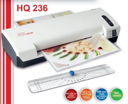 Ať už jste doma, v kanceláři nebo ve škole, tak se neobejdete bez špičkového laminátoru Arta HQ-236 A4. Mezi jeho přednosti patří jednoduchá obsluha, skladnost a rychlost nahřátí laminátoru. Nahřátí stroje do pracovní teploty totiž trvá pouhou 1 minutu a půl a stroj nabízí jak laminování za tepla, tak i laminování za studena rychlostí 400 mm za minutu. Funkce Release zabraní uvíznutí dokumentu mezi válci, což výrazně usnadní manipulaci s laminátorem. Dále je ve spodní části integrována jednoduchá řezačka, která slouží k občasnému oříznutí papíru či zalaminovaného dokumentu.