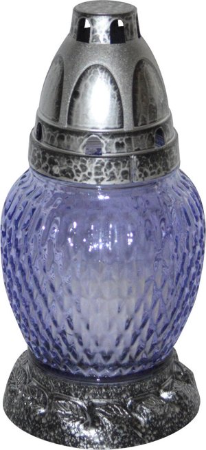 Skleněná hřbitovní svíčka s vyměnitelnou parafínovou náplní 30g, s plastovým spodkem, zajišťujícím dobrou stabilitu skla a plastovým vrškem, který chrání plamen před zhasnutím vlivem větru a deště. Rozměry 8.5 x 8.5 a výška 17 cm. Vyrobeno v EU. EAN 5908260623517