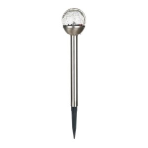 Lampa solární KOULE 6 cm, v. 33,5c m, 1LED, nerez / sklo čirá.