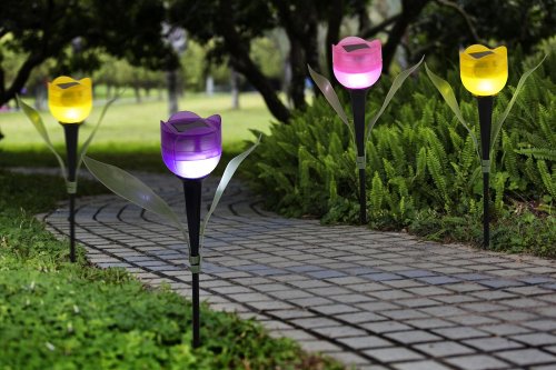 Solární světlo tulipán. Solární lampa je perfektní varianta dekorativního osvětlení pro zahrady, terasu, balkonu či domovní cesty. Lampa zajistí zvýraznění chodníčku, schodů nebo dekoraci záhonů a dalších míst ve Vaší zahradě, bez nutnosti elektrické energie a za pomoci obnovitelných zdrojů. Vzhledem k tomu, že produkt obsahuje plastové části, skladujte ho po zimní sezónu v interiéru - garáž, sklep apod. aby nedocházelo ke křehnutí plastů.