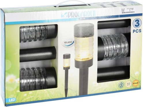 třídílná sada venkovních LED solárních lamp vhodná k osvětlení celé zahrady, verandy, chodníčků, altánků, atd...- určená k zapíchnutí do země ale např. i do květináčů- kvalitní provedení z nerezové oceli- teplé bílé světlo- solární panel v horní části přes den lampu nabíjí, ta se večer při setmění spustí a svítí- lze kdykoliv i manuálně zapínat nebo vypínat tlačítkem- průměr 7,5 cm- výška nadzemní části: 39 cm- celková výška i s bodcem: 54 cm- integrovaná baterie nabíjená slunečním zářením je součástí balení- sada obsahuje 3 ks svítidel- barva: černá- značka: PROGarden