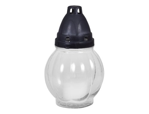 Hřbitovní lampa kulatého tvaru s podélnými rýhami. Je vyrobena ze skla, podstavec a víčko jsou z plastu. V lampičce je vyměnitelná náplň. Hmotnost náplně: 50 g. Doba hoření: 18 hodin. Rozměry: výška 18 cm. Barva: bílá, zlatá.