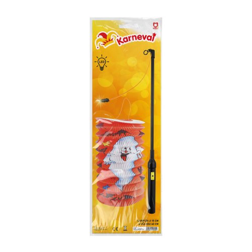 Papírový lampion s motivem ducha a k němu svítící hůlka! Oválný lampion je vyroben z papíru a ve spodní části se nachází úchyt pro čajovou svíčku. Tento super kousek ti zaručí parádní atmosféru na tvém halloweenském večírku nebo lampionovém průvodu! Hůlka vyžaduje 2 tužkové baterie typu AA, které nejsou součástí balení. Přepnutím spínače na rukojeti hůlka svítí.