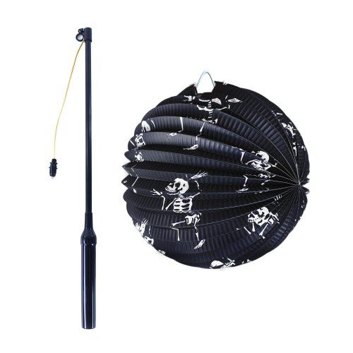 Lampion s halloweenským v černé barvě s bílým potiskem koster ti nesmí chybět na lampionovém průvodu! Součástí balení je i hůlka.