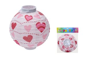 Lampion koule 20 cm na baterie, srdíčka, 2 druhy