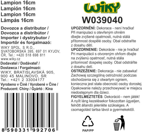 Lampion válec 16 cm Zvířátka. 6 motivů.