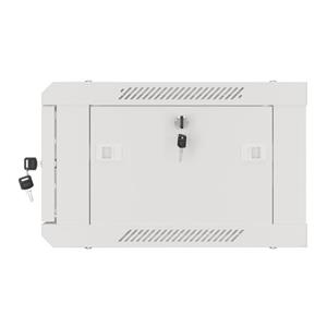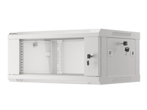 Nástěnná jednodílná skříň Lanberg WF01-6404-10S je řešení určené pro rozšíření sítí, instalaci kabeláže a zařízení o velikosti 19” s max. 60 kg. nosnost. Lze jej použít v sítích, serverovnách, malých a středních firmách. Může také pracovat v systémech nízkého napětí, jako jsou sítě kabelové televize, poplašné systémy, systémy požární ochrany a systémy kontroly přístupu, CCTV a IP dohled. Vhodný design umožňuje jednoduchou, svépomocnou montáž. Skříň se vyznačuje stupněm krytí IP20, otevírací přední dvířka s možností otočení o 180° se zámkem, odnímatelné bočnice (zámky součástí dodávky). Skříň má na horním a spodním krytu panel pro vstup kabelů. Tento výrobek je vyroben z vysoce kvalitní oceli válcované za studena. Konstrukce skříně pro vlastní montáž je v plochém obalu, což usnadňuje přepravu. Balení navíc obsahuje další příslušenství pro držáky na kolejnice, klecové matice M6 a prázdné vstupní panely.