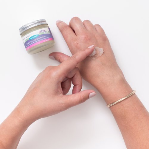 Použití během kojení: organický balzám na bradavky použijte na citlivé a suché bradavky. Důkladně si umyjte ruce. Naneste balzám ve velikosti zrnka hrášku na celou bradavku po každém kojení nebo podle potřeb.