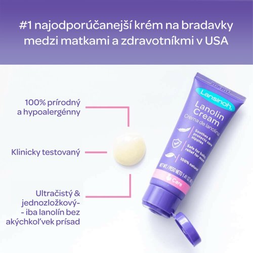 Bolestivé bradavky jsou běžným problémem vyskytujícím se v období kojení. Nejčastější příčinou bolesti je nesprávné přisátí nebo nesprávná poloha miminka na prsu. Zatímco se věnujete odstranění příčiny vzniku bolesti, Lansinoh HPA® lanolínový krém na bolestivé bradavky vám pomůže ochránit a uklidnit vaše bradavky.