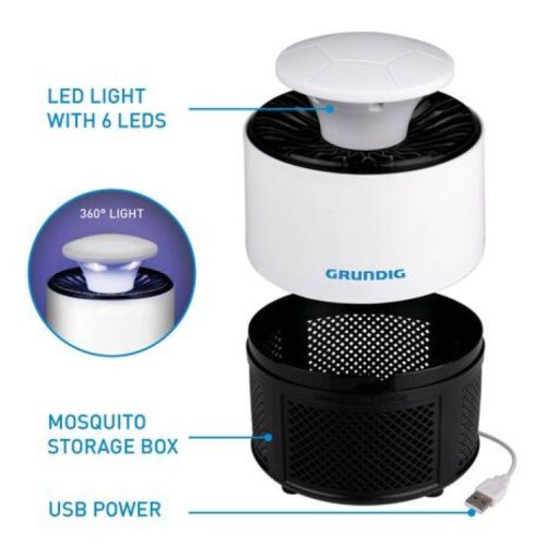 Stylová a efektivní ochrana proti komárům a dalšímu hmyzu. Tato stojací lampa Grundig využívá UV světlo k přilákání létajícího hmyzu, který je následně zachycen do integrované pasti – bez použití chemikálií, zápachu nebo kouře.