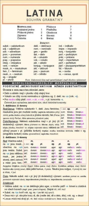 Koncentrovaný přehled sumarizuje učební látku – tvarosloví, skladba. Přehledné členění, grafická úprava a volba barev umožňuje rychlou orientaci v textu a snadnější zapamatování.