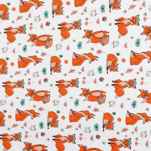 Látka - elastický úplet s potiskem - šířka 175 cm - Lištičky