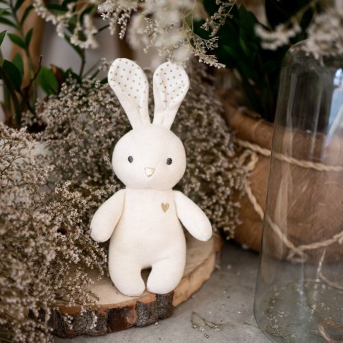 Krásný, pletený králíček, který se stane skvělým kamarádem pro hraní či usínání Vašeho dítěte.