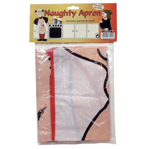 Zábavná látková zástěra na vaření s kresleným obrázkem nahého mužského těla.