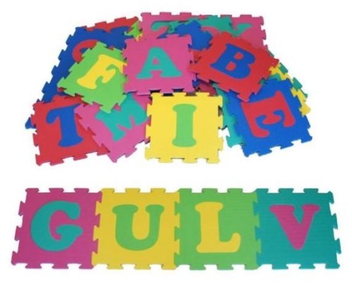 Velký pěnový podlahový puzzle koberec s 26 dílky v šesti veselých barvách s vyjímatelnými částmi ve tvaru písmen. Pěnové puzzle má jemně vroubkovaný povrch a nadstandardní tloušťku 12mm. Inovované zámky o šířce 6 cm pevně drží u sebe a puzzle je vhodné pro děti od 12 měsíců. Měkká, omyvatelná, zdravotně nezávadná podložka vyrobená z EVA pěny skvěle tlumí hluk, izoluje od chladu a je nenáročná na údržbu. Má široké využití - je praktický jako podlaha nejen do dětských pokojíčků, ale i jako vhodná pomůcka při učení. Vzhledem k vysoké kvalitě je Pěnový koberec extra vhodný také do hracích koutků, školek a škol. Plochu tak můžete libovolně rozšířit dle potřeby. Tloušťka 1,2 cm. Země původu: Taiwan. Baleno v uzavíratelné plastové tašce s uchem. Věk: od 12 měsíců