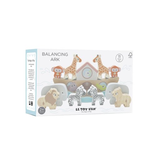 Krásná hračka v tradičním designu pro nejmenší děti. Barevná balanční archa s deseti ručně malovanými zvířátky, díky které se děti naučí poznávat barvy a tvary. Dokážou na lodi vybalancovat všech 5 párů zvířat? Balanční hračka dětem pomůže s kognitivním rozvojem, trénuje koordinaci ruka-oko a zručnost. Vyrobeno z udržitelného dřeva, malováno netoxickými barvami. Hračky s účelemVšechny hračky firmy Le Toy Van jsou vyrobeny s cílem – aby dlouho vydržely. Designovány s láskou zkušenými řemeslníky za použití etických praktik a udržitelných materiálů, které jsou laskavější k naší planetě. Hlavní vlastnosti: vyrobeno eticky z udržitelného dřevatestováno dle nejpřísnějších standardůmalováno netoxickými barvami na bázi vodyinspiruje k představivé hřerozvíjí kognitivní dovednostihračka bez obsahu plastu Ocenění hračky: Good Toy Guide Recommended Kolekce balančních arch: Tato kolekce má mnoho krásných detailů, vdechne zvířátkům život. Je vhodná od 12 měsíců do 3 let, pomáhá s rozvojem různých dovedností, například hra na role, zručnost, kognitivní dovednosti. V této kolekci jsou hlavní tři faktory – vkládání tvarů, balancování zvířátek a představivá hra. Všechny archy jsou inspirovány Noem a jeho zvířátky, tak ať si děti hru velmi užijí! Značka a certifikát FSC® (Forest Stewardship Council) zaručuje, že dřevo, ze kterého byl produkt vyroben, nebylo vytěženo nelegálně a pochází z lesů obhospodařovaných šetrným či přírodě blízkým způsobem, ve kterém jsou dodržovány přísné environmentální a sociální požadavky. Značka FSC® na výrobku znamená, že svým nákupem pomáháte chránit lesy a podporujete šetrné, odpovědné či přírodě blízké hospodaření, díky kterému jsou naše lesy stabilnější, zdravější, mají přirozenou druhovou skladbu a lépe odolávají negativním následkům klimatických změn.
