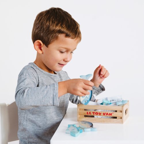 Bedýnka s rybami je perfektní pro hru na role. Najdete v ní několik druhů ryb. Děti se díky hračce naučí o rozdílných potravinách a důležitosti vyvážené stravy. Vyrobeno z pevného a udržitelného dřeva, malováno netoxickými barvami, velikost tak akorát pro malé dětské ruce. Hračka pomůže při rozvoji koordinace a jemné motoriky. Ideální doplněk dětských prodejních stánků a kuchyněk. Hračky s účelemVšechny hračky firmy Le Toy Van jsou vyrobeny s cílem – aby dlouho vydržely. Designovány s láskou zkušenými řemeslníky za použití etických praktik a udržitelných materiálů, které jsou laskavější k naší planetě. Hlavní vlastnosti: vyrobeno eticky z udržitelného dřevatestováno dle nejpřísnějších standardůmalováno netoxickými barvami na bázi vodyinspiruje k představivé hřerozvíjí kognitivní dovednosti Honeybake kolekce: Hračky v této kolekci jsou vhodné k objevování, pomohou dětem s rozvojem představivosti, sociálních a verbálních dovedností a kognitivních funkcí. Tradiční design s moderními detaily děti jistě bude bavit. Honeybake je kolekce Le Toy Van, která vyhrála nejvíce ocenění, a to za design, kvalitu, bezpečnost a také za vzdělávací a herní hodnotu.