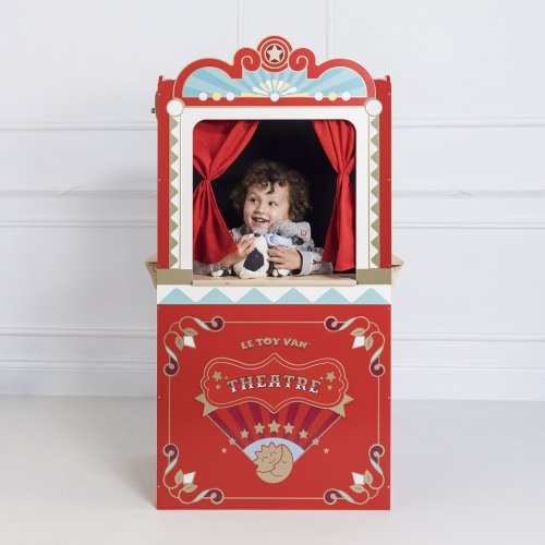 Jeviště je připraveno! Toto krásné retro divadlo má unikátní design a pestrobarevný zevnějšek. Je také vyrobeno z odolného a udržitelného dřeva. Malí herci a herečky si tuto interaktivní hračku jistě zamilují, je realistická a inspiruje k představivé hře. V balení najdete oboustrannou cedulku, dveře na jeviště, dvě tabulky na křídu, na které můžete napsat divadelní program. Pro dramatický efekt byla přidána červená opona a černá zástěna.Divadlo má tři okénka – jeviště, bufet a pokladnu. Děti si s touto hračkou užijí mnoho představivé zábavy. K divadlu se perfektně hodí také popkornovač od Le Toy Van. Hlavní vlastnosti: interaktivní maňáskové divadlotestováno dle nejpřísnějších standardůvyrobeno z udržitelného a odolného dřeva, bez obsahu plastumalováno netoxickými barvami na bázi vodygenderově neutrální designinspiruje ke kreativní a představivé hřepodporuje při raném vývoji Honeybake kolekce: Hračky v této kolekci jsou vhodné k objevování, pomohou dětem s rozvojem představivosti, sociálních a verbálních dovedností a kognitivních funkcí. Tradiční design s moderními detaily děti jistě bude bavit. Honeybake je kolekce Le Toy Van, která vyhrála nejvíce ocenění, a to za design, kvalitu, bezpečnost a také za vzdělávací a herní hodnotu.
