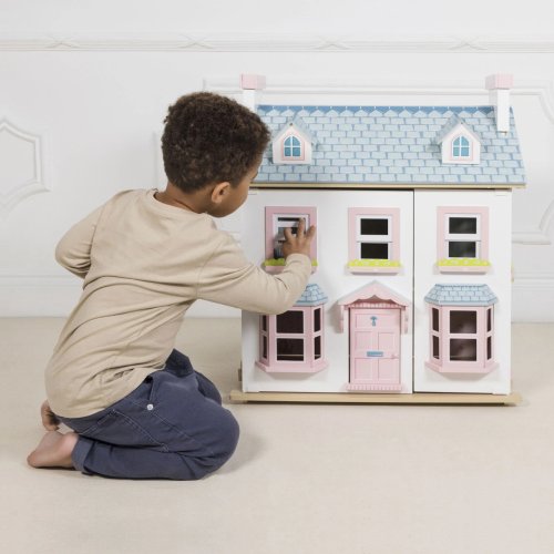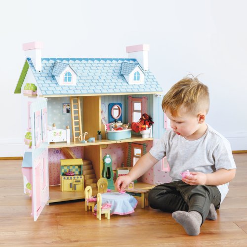 Dřevěný luxusní třípatrový ručně malovaný domeček Mayberry Manor. Jednotlivé pokoje jsou odlišně zdobené. Obsahuje schodiště prolínající se středem domečku. Pokoje jsou odděleny příčnou stěnou. Domeček má funkční otvírací okna, okenice a dveře. Domeček lze otevřít z jedné strany. Střecha je z poloviny odjímatelná a lze ji použít jako předzahrádku, spodní strana střechy je vhodně ilustrovaná. Domeček nabízí velký prostor pro hraní a rozvíjení kreativity. Domeček je určen pro panenky do 15 cm. Nábytek domečku není součástí balení, lze jej dokoupit z naší nabídky stejně jako panenky, venkovní hrací prvky včetně podložky. Vybavení domečku není součástí balení. Domečky Le Toy Van pro panenky jsou vytvářeny s láskou pro celoživotní kouzelnou hru. Používají udržitelné postupy, etiku a vyrábí krásné dřevěné hračky, které dnes i pro další generace inspirují a rozvíjí představivost. Hlavní vlastnosti: vyrobeno ze dřeva s certifikací FSCpomáhá s rozvojem koordinace pohybů, sociálních dovedností a rozvoji řečitřípatrový domeček pro panenky lze dovybavit nábytkem dle vlastní kreativitypodporuje v dlouhodobé představivé hřezlepšuje koordinaci v zábavném prostředívyrobeno eticky z udržitelného dřevagenderově neutrální design nabádá v sdílení mezi sourozencidekorováno netoxickými barvami, testováno dle nejpřísnějších standardů Značka a certifikát FSC® (Forest Stewardship Council) zaručuje, že dřevo, ze kterého byl produkt vyroben, nebylo vytěženo nelegálně a pochází z lesů obhospodařovaných šetrným či přírodě blízkým způsobem, ve kterém jsou dodržovány přísné environmentální a sociální požadavky. Značka FSC® na výrobku znamená, že svým nákupem pomáháte chránit lesy a podporujete šetrné, odpovědné či přírodě blízké hospodaření, díky kterému jsou naše lesy stabilnější, zdravější, mají přirozenou druhovou skladbu a lépe odolávají negativním následkům klimatických změn.