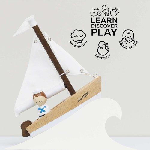 Vyplujte na širé moře a objevujte nová dobrodružství s touto nádhernou plachetnicí, která září nadčasovým kouzlem. Dřevěná plachetnice je ručně vyrobená z bukového dřeva s certifikací FSC ®, některé části jsou mořeny v barvě ořechu, přináší tak nádech autentičnosti. Dekorováno netoxickými barvami na bázi vody, které jsou bezpečné pro děti. Bavlněná vlajka a plachty se lehce vlní ve větru a pohánějí loď k nekonečným obzorům, což zvyšuje nápaditou hrací hodnotu této hračky. Loď doprovází miniaturní dřevěný námořník, který má ručně malovaný námořnický oděv, díky tomu se hra s touto plachetnicí se stává ještě zábavnější. Ať už je loď používána jako dekorativní prvek, nebo jako hračka, okamžitě poutá pozornost každého dítěte. Pomáhá rozvíjet kognitivní dovednosti, zručnost a koordinaci ruka - oko. Hračky s účelemVšechny hračky firmy Le Toy Van jsou vyrobeny s cílem – aby dlouho vydržely. Designovány s láskou zkušenými řemeslníky za použití etických praktik a udržitelných materiálů, které jsou laskavější k naší planetě. Hlavní vlastnosti: rozvíjí zručnost, koordinaci a představivostvyrobeno z dřeva s certifikátem FSC®malováno netoxickými barvami na bázi vodytestováno dle nejpřísnějších standardůhračka bez plastů Značka a certifikát FSC® (Forest Stewardship Council) zaručuje, že dřevo, ze kterého byl produkt vyroben, nebylo vytěženo nelegálně a pochází z lesů obhospodařovaných šetrným či přírodě blízkým způsobem, ve kterém jsou dodržovány přísné environmentální a sociální požadavky. Značka FSC® na výrobku znamená, že svým nákupem pomáháte chránit lesy a podporujete šetrné, odpovědné či přírodě blízké hospodaření, díky kterému jsou naše lesy stabilnější, zdravější, mají přirozenou druhovou skladbu a lépe odolávají negativním následkům klimatických změn.