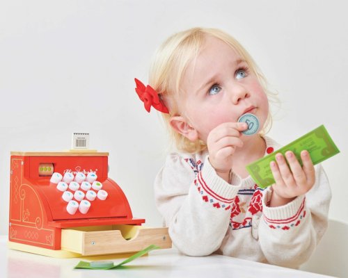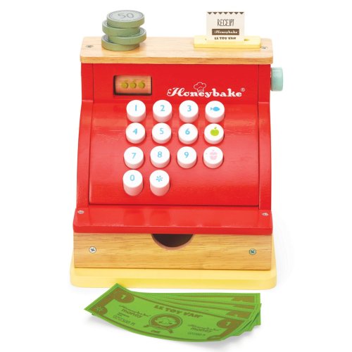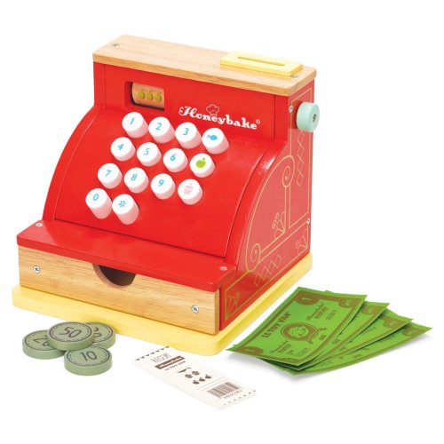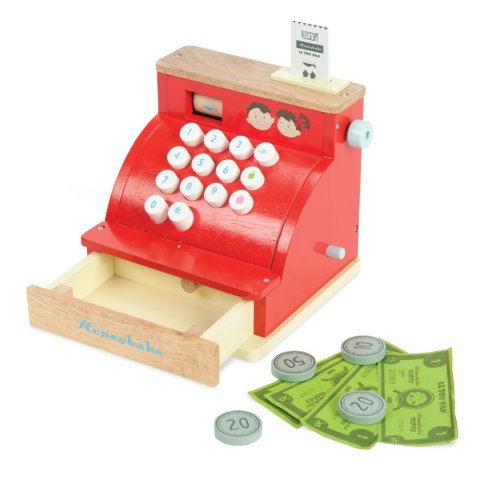 Tahle roztomilá dřevěná pokladna v retro stylu vypadá naprosto úžasně a je ideální hračkou pro malé prodavače i prodavačky. Díky ní se děti zábavnou formou naučí počítat, poznávat čísla a rozvíjet své sociální dovednosti při hře na obchod. Pokladna má spoustu detailů. Otevírací šuplík na peníze, dřevěnou účtenku, papírové bankovky a mince i platební kartu. Její vintage design s jasně červenou barvou a zlatými detaily dodává hračce jedinečný šmrnc a zapadne do každého dětského pokojíčku.Tato odolná vzdělávací hračka je vyrobena z kvalitního, udržitelně získaného dřeva a díky preciznímu zpracování vydrží celé roky hraní. Hračky s účelemVšechny hračky firmy Le Toy Van jsou vyrobeny s cílem – aby dlouho vydržely. Designovány s láskou zkušenými řemeslníky za použití etických praktik a udržitelných materiálů, které jsou laskavější k naší planetě. Hlavní vlastnosti: rozvíjí matematické schopnosti a představivost dětívyrobeno eticky z udržitelného dřevatestováno dle nejpřísnějších standardůmalováno netoxickými barvami na bázi vodyinspiruje k představivé hřerozvíjí kognitivní dovednostivhodné pro děti od 3 let