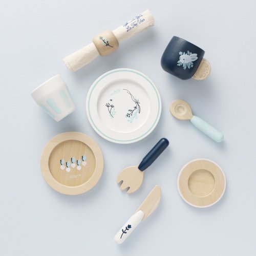 Oběd chutná lépe, když je servírován na pěkném nádobí. Tato hračka je udržitelná a vydrží vám opravdu dlouho. Přírodní barva dřeva, bílá a odstíny modré k sobě pěkně ladí, nechybí ani ilustrace rostlinek. V sadě najdete hrnek, podšálek, kelímek, 2 talíře, nůž, vidličku, lžíci a ubrousek s dekorativním kroužkem. Děti si při představivé hře procvičí jemnou motoriku, zručnost a koordinaci ruka-oko. Malováno netoxickými barvami na bázi vody. Hračky s účelemVšechny hračky firmy Le Toy Van jsou vyrobeny s cílem – aby dlouho vydržely. Designovány s láskou zkušenými řemeslníky za použití etických praktik a udržitelných materiálů, které jsou laskavější k naší planetě. Hlavní vlastnosti: vyrobeno eticky z udržitelného dřevatestováno dle nejpřísnějších standardůmalováno netoxickými barvami na bázi vodyinspiruje k představivé hřerozvíjí kognitivní dovednosti Honeybake kolekce: Hračky v této kolekci jsou vhodné k objevování, pomohou dětem s rozvojem představivosti, sociálních a verbálních dovedností a kognitivních funkcí. Tradiční design s moderními detaily děti jistě bude bavit. Honeybake je kolekce Le Toy Van, která vyhrála nejvíce ocenění, a to za design, kvalitu, bezpečnost a také za vzdělávací a herní hodnotu. Značka a certifikát FSC® (Forest Stewardship Council) zaručuje, že dřevo, ze kterého byl produkt vyroben, nebylo vytěženo nelegálně a pochází z lesů obhospodařovaných šetrným či přírodě blízkým způsobem, ve kterém jsou dodržovány přísné environmentální a sociální požadavky. Značka FSC® na výrobku znamená, že svým nákupem pomáháte chránit lesy a podporujete šetrné, odpovědné či přírodě blízké hospodaření, díky kterému jsou naše lesy stabilnější, zdravější, mají přirozenou druhovou skladbu a lépe odolávají negativním následkům klimatických změn.