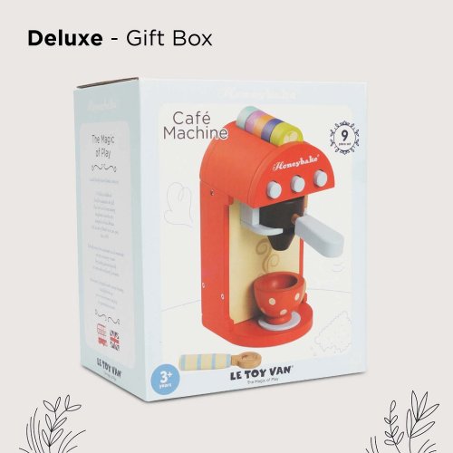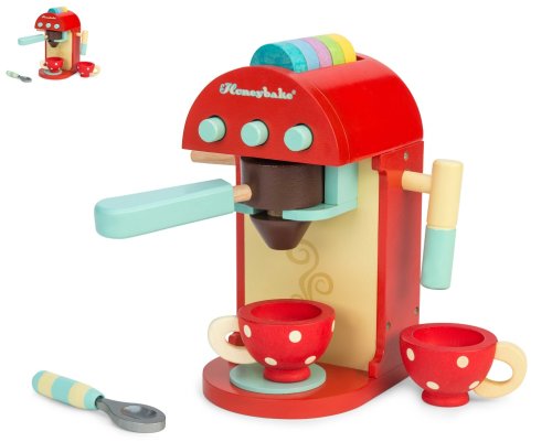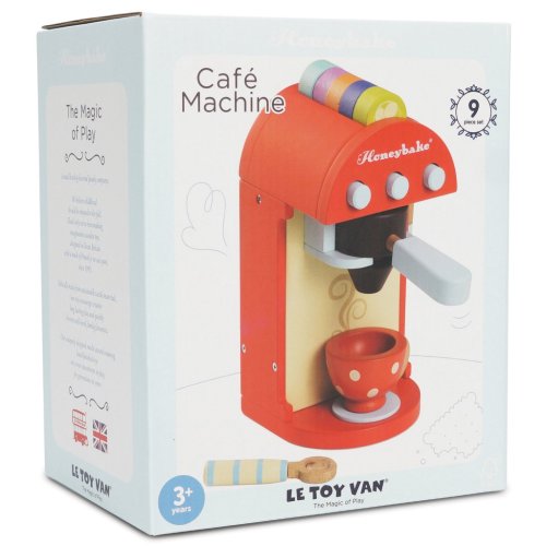 Kdo si dá kávu? Tento realistický kávovar nadchne mladé baristy a baristky. V balení dřevěné kávové kapsle, které lze jednoduše vložit do páky a uvařit kávu přímo do malovaného hrnečku. Na boční straně samozřejmě najdete také napěňovač mléka. Nechybí ani lžička, kávové kapsle lze uložit do otvoru svrchu kávovaru. Hračka je vyrobena z udržitelného a odolného dřeva, malována pestrými netoxickými barvami na bázi vody. Hračky s účelemVšechny hračky firmy Le Toy Van jsou vyrobeny s cílem – aby dlouho vydržely. Designovány s láskou zkušenými řemeslníky za použití etických praktik a udržitelných materiálů, které jsou laskavější k naší planetě. Hlavní vlastnosti: vyrobeno eticky z udržitelného dřevatestováno dle nejpřísnějších standardůmalováno netoxickými barvami na bázi vodyinspiruje k představivé hřerozvíjí kognitivní dovednosti Ocenění hračky:Made For Mums Gold Award 2017Progressive Preschool Award Winner 2014 Honeybake kolekce: Hračky v této kolekci jsou vhodné k objevování, pomohou dětem s rozvojem představivosti, sociálních a verbálních dovedností a kognitivních funkcí. Tradiční design s moderními detaily děti jistě bude bavit. Honeybake je kolekce Le Toy Van, která vyhrála nejvíce ocenění, a to za design, kvalitu, bezpečnost a také za vzdělávací a herní hodnotu. Značka a certifikát FSC® (Forest Stewardship Council) zaručuje, že dřevo, ze kterého byl produkt vyroben, nebylo vytěženo nelegálně a pochází z lesů obhospodařovaných šetrným či přírodě blízkým způsobem, ve kterém jsou dodržovány přísné environmentální a sociální požadavky. Značka FSC® na výrobku znamená, že svým nákupem pomáháte chránit lesy a podporujete šetrné, odpovědné či přírodě blízké hospodaření, díky kterému jsou naše lesy stabilnější, zdravější, mají přirozenou druhovou skladbu a lépe odolávají negativním následkům klimatických změn.