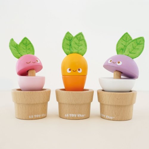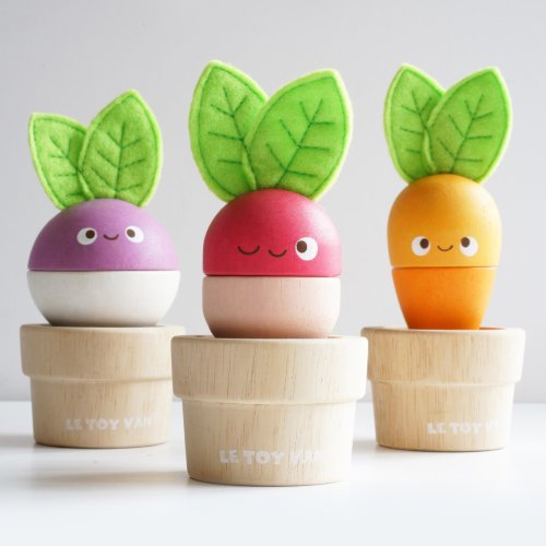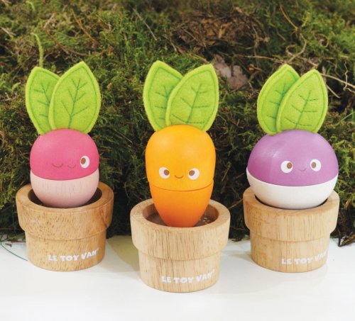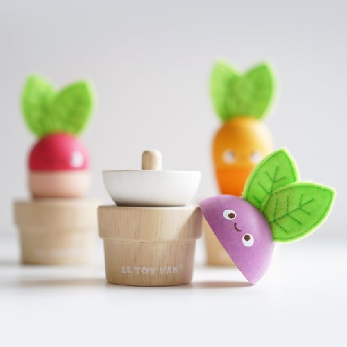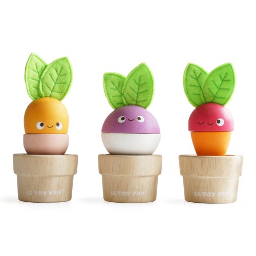 Zelenina je důležitá! Mladí zahrádkáři nebo milovníci přírody si tuto hračku o 6 dílech jistě oblíbí. Mohou mixovat jednotlivé dílky a vytvořit v květináčku úplně nový typ zeleniny nebo se držet předlohy a poskládat mrkev, ředkev a řepu. Vzdělávací hračka má velikost tak akorát pro dětské ruce. Je zábavná a univerzální, děti si s ní procvičí jemnou motoriku, zručnost a představivost. Hračka je vyrobená z odolného a udržitelného kaučukového dřeva, malována barvami na bázi vody. Nechybí ani ručně šité plstěné lístky. Hračky s účelemVšechny hračky firmy Le Toy Van jsou vyrobeny s cílem – aby dlouho vydržely. Designovány s láskou zkušenými řemeslníky za použití etických praktik a udržitelných materiálů, které jsou laskavější k naší planetě. Hlavní vlastnosti: vyrobeno eticky z udržitelného dřevatestováno dle nejpřísnějších standardůmalováno netoxickými barvami na bázi vodyinspiruje k představivé hřerozvíjí koordinaci ruka-okomultisenzorická hračka Petilou kolekce: Kolekce pro nemluvňata a batolata od Le Toy Van obsahuje hlavně hmatové hračky, které mají nejmenším posloužit také jako učební prostředky. Kolekce je inspirována přírodou kolem nás a je navržena tak, aby rozvíjela smysly dětí pomocí rozdílných zvuků, textur, tvarů a hmotností. Děti tak od malička zapojí všechny své smysly. V kolekci najdete například skládačky, vkládačky, chodítka, …