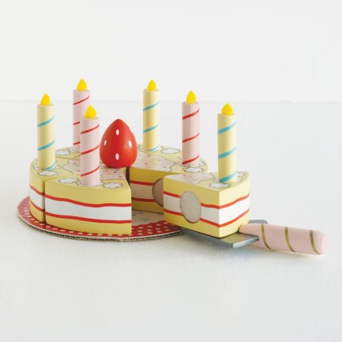 Oslava může začít! Vanilkový dort s narozeninovými svíčkami je připraven na sfouknutí! Krémový dort s jahodami je perfektní pro představivou hru na role. Lze jej „nakrájet“ na šestiny, ty drží pohromadě díky suchému zipu. Z krabice lze také vystřihnout krajkový podnos, což hračce přidá šmrnc. Tato udržitelná hračka vám vydrží opravdu dlouho. Dětem pomůže s rozvojem sociální dovedností, zručnosti a jemné motoriky. Hračky s účelemVšechny hračky firmy Le Toy Van jsou vyrobeny s cílem – aby dlouho vydržely. Designovány s láskou zkušenými řemeslníky za použití etických praktik a udržitelných materiálů, které jsou laskavější k naší planetě. Hlavní vlastnosti: vyrobeno eticky z udržitelného dřevatestováno dle nejpřísnějších standardůmalováno netoxickými barvami na bázi vodyinspiruje k představivé hřerozvíjí kognitivní dovednosti Honeybake kolekce: Hračky v této kolekci jsou vhodné k objevování, pomohou dětem s rozvojem představivosti, sociálních a verbálních dovedností a kognitivních funkcí. Tradiční design s moderními detaily děti jistě bude bavit. Honeybake je kolekce Le Toy Van, která vyhrála nejvíce ocenění, a to za design, kvalitu, bezpečnost a také za vzdělávací a herní hodnotu. Značka a certifikát FSC® (Forest Stewardship Council) zaručuje, že dřevo, ze kterého byl produkt vyroben, nebylo vytěženo nelegálně a pochází z lesů obhospodařovaných šetrným či přírodě blízkým způsobem, ve kterém jsou dodržovány přísné environmentální a sociální požadavky. Značka FSC® na výrobku znamená, že svým nákupem pomáháte chránit lesy a podporujete šetrné, odpovědné či přírodě blízké hospodaření, díky kterému jsou naše lesy stabilnější, zdravější, mají přirozenou druhovou skladbu a lépe odolávají negativním následkům klimatických změn.