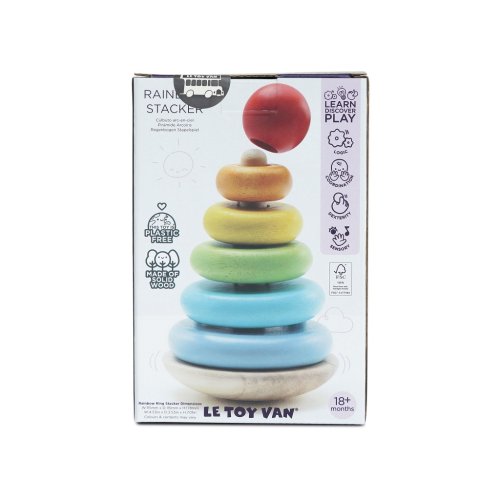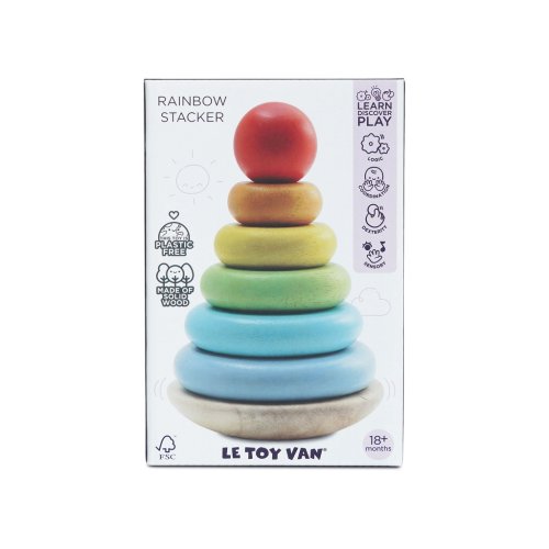 Dokážeš poskládat tuto duhu ve správném pořadí? Robustní barevné kroužky vybízí i ty nejmenší děti k jejich třídění. Trénuje se tak motorika, koordinace ruky a oka a chápání tvarů a velikostí. Houpající základna přidává na zábavě! Skládací věž je vyrobena ze dřeva s certifikací FSC® (dřevo z lesů obhospodařovaných udržitelným způsobem) a ozdobena barvami na vodní bázi bezpečnými pro děti. Hračky s účelemVšechny hračky firmy Le Toy Van jsou vyrobeny s cílem – aby dlouho vydržely. Designovány s láskou zkušenými řemeslníky za použití etických praktik a udržitelných materiálů, které jsou laskavější k naší planetě. Hlavní vlastnosti: vyrobeno eticky z udržitelného dřevatestováno dle nejpřísnějších standardůmalováno netoxickými barvami na bázi vody6 kroužků a kolíček se zaoblenou základnoutrénuje motoriku a koordinaci Ocenění hračky: Right Start Toy Award 2023 Petilou kolekce: Kolekce pro nemluvňata a batolata od Le Toy Van obsahuje hlavně hmatové hračky, které mají nejmenším posloužit také jako učební prostředky. Kolekce je inspirována přírodou kolem nás a je navržena tak, aby rozvíjela smysly dětí pomocí rozdílných zvuků, textur, tvarů a hmotností. Děti tak od malička zapojí všechny své smysly. V kolekci najdete například skládačky, vkládačky, chodítka, … Značka a certifikát FSC® (Forest Stewardship Council) zaručuje, že dřevo, ze kterého byl produkt vyroben, nebylo vytěženo nelegálně a pochází z lesů obhospodařovaných šetrným či přírodě blízkým způsobem, ve kterém jsou dodržovány přísné environmentální a sociální požadavky. Značka FSC® na výrobku znamená, že svým nákupem pomáháte chránit lesy a podporujete šetrné, odpovědné či přírodě blízké hospodaření, díky kterému jsou naše lesy stabilnější, zdravější, mají přirozenou druhovou skladbu a lépe odolávají negativním následkům klimatických změn.