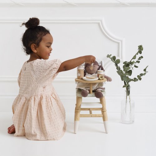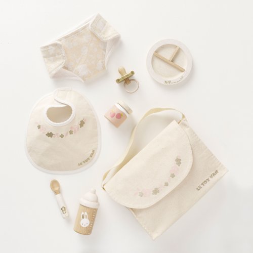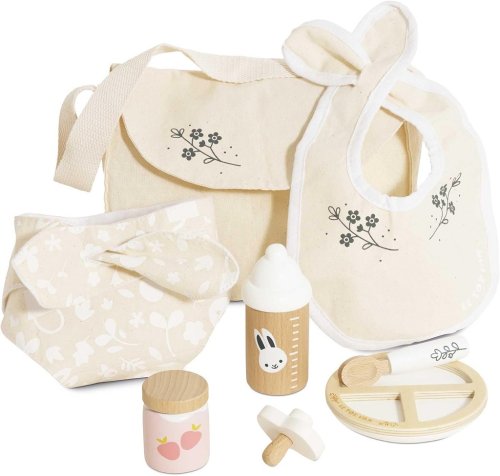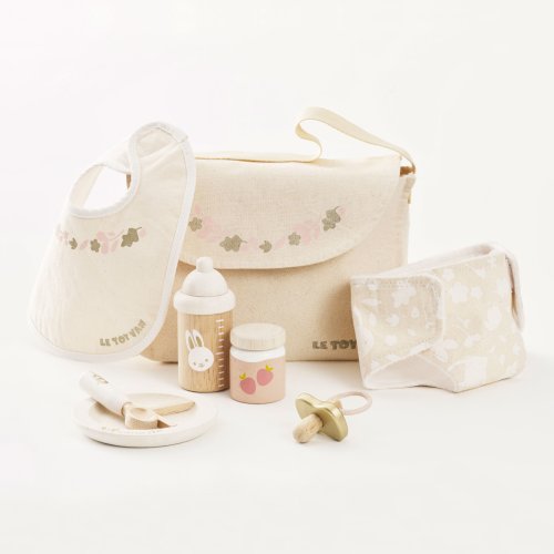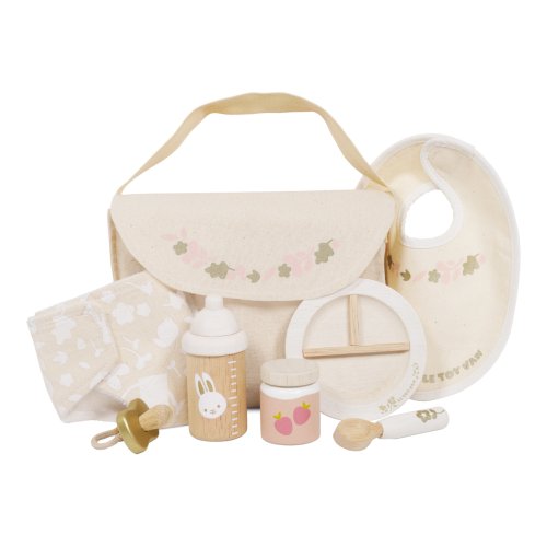 Představivá sada pro malé pečovatele a pečovatelky. Tato krásná souprava obsahuje vše, co budou děti pro péči o plyšáky a panenky potřebovat. V balení roztomilá textilní přebalovací taška s popruhem, s ozdobnou ilustrací listů. Uvnitř najdete všechny nezbytnosti, dudlík, bryndák, plenku, talíř, lžíci, přesnídávku a lahvičku. Vyrobeno s láskou z kombinace přírodní bavlny a pevného dřeva. Všechny doplňky jsou vhodné pro plyšáky a panenky ve velikosti cca 30 až 35 cm. Hračky s účelemVšechny hračky firmy Le Toy Van jsou vyrobeny s cílem – aby dlouho vydržely. Designovány s láskou zkušenými řemeslníky za použití etických praktik a udržitelných materiálů, které jsou laskavější k naší planetě. Hlavní vlastnosti: pro plyšáky a panenky ve velikosti cca 30 až 35 cmvyrobeno eticky z udržitelného dřevamalováno netoxickými barvami na bázi vodytestováno dle nejpřísnějších standardůpodporuje představivost, hraní na rolepomáhá s rozvojem řeči a sociálních dovedností Ocenění hračky:Independent Toy Gold Award 2021 Honeybake kolekce: Hračky v této kolekci jsou vhodné k objevování, pomohou dětem s rozvojem představivosti, sociálních a verbálních dovedností a kognitivních funkcí. Tradiční design s moderními detaily děti jistě bude bavit. Honeybake je kolekce Le Toy Van, která vyhrála nejvíce ocenění, a to za design, kvalitu, bezpečnost a také za vzdělávací a herní hodnotu.