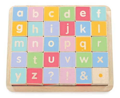 Naučte nejmenší děti abecedu zábavnou formou! Kostky jsou tradiční hmatovou hračkou, která rozvíjí zručnost, koordinaci ruka-oko, motoriku a prostorovou představivost. Každá z 30 kostek je ručně natištěna sítotiskem, každá je jedinečná. Kostky mají na každé ze stran jiný design – číslice, písmena, obrazce, zvířátka… Hračka je vyrobena z odolného kaučukového dřeva a malována barvami na bázi vody, které se neodlupují. Kostky i úložná deska mají zaoblené hrany, tato hračka bez obsahu plastu je tak bezpečná pro děti. Hračky s účelemVšechny hračky firmy Le Toy Van jsou vyrobeny s cílem – aby dlouho vydržely. Designovány s láskou zkušenými řemeslníky za použití etických praktik a udržitelných materiálů, které jsou laskavější k naší planetě. Hlavní vlastnosti: vyrobeno eticky z udržitelného dřevatestováno dle nejpřísnějších standardůmalováno netoxickými barvami na bázi vodyinspiruje k představivé hřerozvíjí kognitivní dovednostihračka bez obsahu plastu Ocenění hračky:Loved By Parents Best Buy Platinum Award 2018Early Years Five Star Excelence 2018Good Toy Guide Recommended Petilou kolekce: Kolekce pro nemluvňata a batolata od Le Toy Van obsahuje hlavně hmatové hračky, které mají nejmenším posloužit také jako učební prostředky. Kolekce je inspirována přírodou kolem nás a je navržena tak, aby rozvíjela smysly dětí pomocí rozdílných zvuků, textur, tvarů a hmotností. Děti tak od malička zapojí všechny své smysly. V kolekci najdete například skládačky, vkládačky, chodítka, … Značka a certifikát FSC® (Forest Stewardship Council) zaručuje, že dřevo, ze kterého byl produkt vyroben, nebylo vytěženo nelegálně a pochází z lesů obhospodařovaných šetrným či přírodě blízkým způsobem, ve kterém jsou dodržovány přísné environmentální a sociální požadavky. Značka FSC® na výrobku znamená, že svým nákupem pomáháte chránit lesy a podporujete šetrné, odpovědné či přírodě blízké hospodaření, díky kterému jsou naše lesy stabilnější, zdravější, mají přirozenou druhovou skladbu a lépe odolávají negativním následkům klimatických změn.