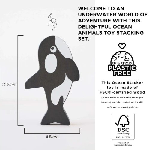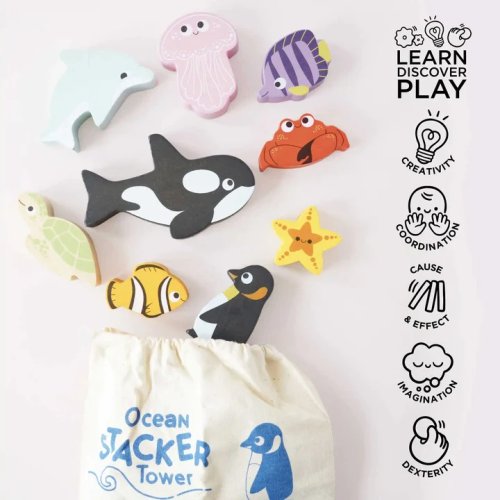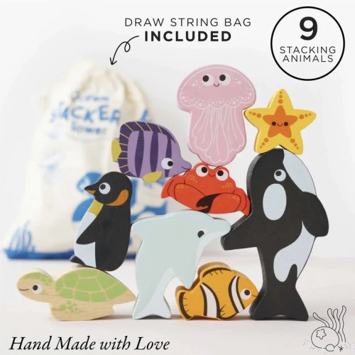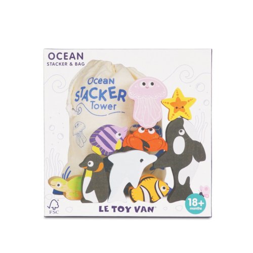 Vítejte v podmořském světě plném dobrodružství! Užijte si senzorickou zábavu se skládací věží podmořských zvířátek. Tuto udržitelnou hračku si zamilují i nejmenší děti, skládejte dílky na sebe a poté sledujte, jak padají. Malováno netoxickými barvami, které se neodlupují. Sada se skládá z 9 zvířecích dílků, které mají velikost tak akorát pro dětské ruce. Velryba, delfín, hvězdice, tučňák, mořská želva, medúza a další mořští přátelé. Děti získají nové poznatky o oceánu a jeho obyvatelích, zároveň si procvičí zručnost a tolik důležitou jemnou motoriku. Hračka je perfektní na cesty, dílky jsou zabaleny v bavlněném pytlíku. Tato hračka je bez obsahu plastu, cílem Le Toy Van je zbavit se veškerého plastu v obalových materiálech jejich hraček. Skládací věž děti inspiruje k učení formou hry, je vyrobena z odolných materiálů zkušenými řemeslníky, za použití etických praktik a udržitelných materiálů, které jsou laskavější k naší planetě. Vyrobeno z certifikovaného FSC dřeva, dekorováno barvami na bázi vody, které jsou bezpečné pro děti. Ocenění hračky: v balení bavlněný pytlík a 9 zvířátek z pevného dřevavyrobeno z FSC dřevabez obsahu plastutestováno dle nejpřísnějších standardůmalováno netoxickými barvami na bázi vodyzaoblené hranypodporuje při raném vývoji vhodné pro představivou hru Hlavní vlastnosti: Right Start Toy Award 2021The Veggie Award Finalist 2021