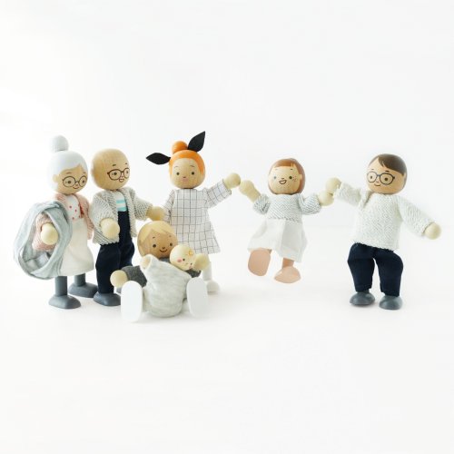 Šťastná rodina! Tato sada sedmi dřevěných panenek je připravena a čeká na rodinná dobrodružství. Postavičky jsou oblečeny do krásných, ručně šitých outfitů. Jejich velikost je přizpůsobena pro všechny domečky a produkty značky Le Toy Van. Ideální hračka pro vzdělávání a inspiraci, která podporuje sociální hru a zdokonaluje jemné motorické dovednosti. Produkt se může lišit v barevných detailech. Hračky s účelemVšechny hračky firmy Le Toy Van jsou vyrobeny s cílem – aby dlouho vydržely. Designovány s láskou zkušenými řemeslníky za použití etických praktik a udržitelných materiálů, které jsou laskavější k naší planetě. Hlavní vlastnosti: panenky mají ručně šité oblečení, vlněné vlasy a pohyblivé končetinyodborně a láskyplně vyrobeno z udržitelných materiálůdřevo certifikované FSC z udržitelných zdrojůdůkladně testováno, aby splňovalo nejvyšší bezpečnostní standardyzdobeno netoxickými barvami na vodní bázihračka pomáhá rozvíjet komunikaci, sociální dovednosti a kreativitu Značka a certifikát FSC® (Forest Stewardship Council) zaručuje, že dřevo, ze kterého byl produkt vyroben, nebylo vytěženo nelegálně a pochází z lesů obhospodařovaných šetrným či přírodě blízkým způsobem, ve kterém jsou dodržovány přísné environmentální a sociální požadavky. Značka FSC® na výrobku znamená, že svým nákupem pomáháte chránit lesy a podporujete šetrné, odpovědné či přírodě blízké hospodaření, díky kterému jsou naše lesy stabilnější, zdravější, mají přirozenou druhovou skladbu a lépe odolávají negativním následkům klimatických změn.