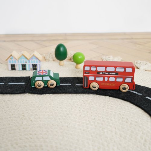 Těchto sedm dřevěných ikonických autíček z Londýna děti jistě inspiruje k představivé hře. Vozidla jsou vyrobena z odolného a udržitelného kaučukového dřeva, děti si při hře mohou vytvářet vlastní příběhy, také si potrénují zručnost a jemnou motoriku. V balení dvoupatrový autobus, černý taxík, hasičské auto, sanitka a dvě osobní auta. Kompatibilní s dřevěnými garážemi a vláčkodráhrami Le Toy Van, také s vláčkodráhami jiných značek. Hračky s účelemVšechny hračky firmy Le Toy Van jsou vyrobeny s cílem – aby dlouho vydržely. Designovány s láskou zkušenými řemeslníky za použití etických praktik a udržitelných materiálů, které jsou laskavější k naší planetě. Hlavní vlastnosti: vyrobeno eticky z udržitelného dřevatestováno dle nejpřísnějších standardůmalováno netoxickými barvami na bázi vodyinspiruje k představivé hřerozvíjí kognitivní dovednosti Auta & stavby: Stavební a motorická kolekce Le Toy Van, která vyhrála mnoho ocenění. Přesněji prozatím přes 15 ocenění za představivá auta a stavební hračky. Podporují dětskou fantazii, jsou ideální k představivé hře, rozvíjí kreativitu a hravě zlepšují dětskou koordinaci ruka‑oko. Značka a certifikát FSC® (Forest Stewardship Council) zaručuje, že dřevo, ze kterého byl produkt vyroben, nebylo vytěženo nelegálně a pochází z lesů obhospodařovaných šetrným či přírodě blízkým způsobem, ve kterém jsou dodržovány přísné environmentální a sociální požadavky. Značka FSC® na výrobku znamená, že svým nákupem pomáháte chránit lesy a podporujete šetrné, odpovědné či přírodě blízké hospodaření, díky kterému jsou naše lesy stabilnější, zdravější, mají přirozenou druhovou skladbu a lépe odolávají negativním následkům klimatických změn.