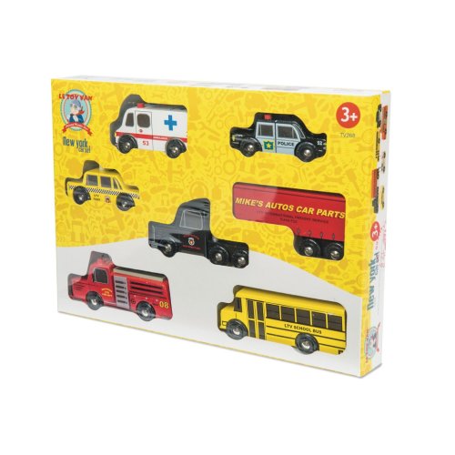 Těchto šest dřevěných ikonických autíček z USA děti jistě inspiruje k představivé hře. Vozidla jsou vyrobena z odolného a udržitelného kaučukového dřeva, děti si při hře mohou vytvářet vlastní příběhy, také si potrénují zručnost a jemnou motoriku. V balení kloubové nákladní auto s deseti koly, žlutý školní autobus, policejní auto, žlutý taxík, sanitka a hasičské auto. Kompatibilní s dřevěnými garážemi a vláčkodráhrami Le Toy Van, také s vláčkodráhami jiných značek. Hračky s účelemVšechny hračky firmy Le Toy Van jsou vyrobeny s cílem – aby dlouho vydržely. Designovány s láskou zkušenými řemeslníky za použití etických praktik a udržitelných materiálů, které jsou laskavější k naší planetě. Hlavní vlastnosti: vyrobeno eticky z udržitelného dřevatestováno dle nejpřísnějších standardůmalováno netoxickými barvami na bázi vodyinspiruje k představivé hřerozvíjí kognitivní dovednosti Auta & stavby: Stavební a motorická kolekce Le Toy Van, která vyhrála mnoho ocenění. Přesněji prozatím přes 15 ocenění za představivá auta a stavební hračky. Podporují dětskou fantazii, jsou ideální k představivé hře, rozvíjí kreativitu a hravě zlepšují dětskou koordinaci ruka‑oko. Značka a certifikát FSC® (Forest Stewardship Council) zaručuje, že dřevo, ze kterého byl produkt vyroben, nebylo vytěženo nelegálně a pochází z lesů obhospodařovaných šetrným či přírodě blízkým způsobem, ve kterém jsou dodržovány přísné environmentální a sociální požadavky. Značka FSC® na výrobku znamená, že svým nákupem pomáháte chránit lesy a podporujete šetrné, odpovědné či přírodě blízké hospodaření, díky kterému jsou naše lesy stabilnější, zdravější, mají přirozenou druhovou skladbu a lépe odolávají negativním následkům klimatických změn.