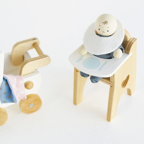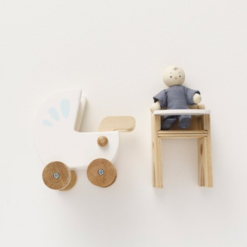 Dřevěný malovaný kočárek s postavičkou miminka. Součástí setu je vysoká jídelní židlea, jídelní souprava pro miminko a taška. Textilní doplňky jsou vyrobeny ručně. Vyrobeno ekologicky z přírodního, odolného kaučukového dřeva. Hlavní vlastnosti: rozměry jídelní židle 5x6x8 cmvyrobeno z trvanlivého, udržitelného kaučukového dřevaeticky vyrobeno s láskoudůkladně testováno, aby splňovalo nejvyšší bezpečnostní standardyzdobeno netoxickými barvami na vodní bázipodporuje kreativitu prostřednictvím nápadité hry pomáhá rozvíjet jemnou motoriku a koordinaci