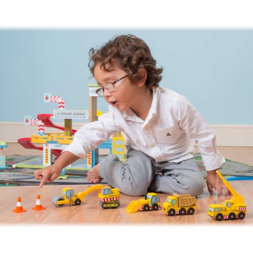Sada pěti dřevěných stavebních strojů s pohyblivými částmi je perfektní pro interaktivní hru. Mladí stavitelé a stavitelky si užijí zábavu s domíchávačem, náklaďákem, nakladačem, bagrem, válcem a dvěma dopravními kužely. Velikostí kompatibilní s garážemi a koberci Le Toy Van. Vyrobeno z udržitelného dřeva, malováno netoxickými barvami na bázi vody. Hračky s účelemVšechny hračky firmy Le Toy Van jsou vyrobeny s cílem – aby dlouho vydržely. Designovány s láskou zkušenými řemeslníky za použití etických praktik a udržitelných materiálů, které jsou laskavější k naší planetě. Hlavní vlastnosti: vyrobeno eticky z udržitelného dřevatestováno dle nejpřísnějších standardůmalováno netoxickými barvami na bázi vodyinspiruje k představivé hřerozvíjí kognitivní dovednosti Auta & stavby: Stavební a motorická kolekce Le Toy Van, která vyhrála mnoho ocenění. Přesněji prozatím přes 15 ocenění za představivá auta a stavební hračky. Podporují dětskou fantazii, jsou ideální k představivé hře, rozvíjí kreativitu a hravě zlepšují dětskou koordinaci ruka‑oko.