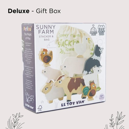Užijte si senzorickou zábavu s touto sadou farmářských zvířátek! Sada se skládá z 9 dílků - tedy pejska, ovečky, krávy, prasátka se selátkem, kachny, slepičky a kohouta, kteří mají velikost tak akorát pro dětské ruce. Figurky lze na sebe stohovat a vytvářet tak vysoké "věže". Děti mohou při hraní získat nejen nové poznatky o obyvatelích žijících na farmě, ale zároveň si i procvičit zručnost a tolik důležitou jemnou motoriku. Díky skladnosti je hračka perfektní volbou i na cestách (dílky jsou uschovány v bavlněném pytlíku). Skládací věž Farma je vyrobena ze dřeva s certifikací FSC® (dřevo z lesů obhospodařovaných udržitelným způsobem) a ozdobena barvami na vodní bázi bezpečnými pro děti. Hračky s účelemVšechny hračky firmy Le Toy Van jsou vyrobeny s cílem – aby dlouho vydržely. Designovány s láskou zkušenými řemeslníky za použití etických praktik a udržitelných materiálů, které jsou laskavější k naší planetě. Hlavní vlastnosti: textilní pytlík, 9 figurek zvířatzaoblené hranyvyrobeno eticky z udržitelného dřevatestováno dle nejpřísnějších standardůmalováno netoxickými barvami na bázi vodyinspiruje k představivé hře Značka a certifikát FSC® (Forest Stewardship Council) zaručuje, že dřevo, ze kterého byl produkt vyroben, nebylo vytěženo nelegálně a pochází z lesů obhospodařovaných šetrným či přírodě blízkým způsobem, ve kterém jsou dodržovány přísné environmentální a sociální požadavky. Značka FSC® na výrobku znamená, že svým nákupem pomáháte chránit lesy a podporujete šetrné, odpovědné či přírodě blízké hospodaření, díky kterému jsou naše lesy stabilnější, zdravější, mají přirozenou druhovou skladbu a lépe odolávají negativním následkům klimatických změn.