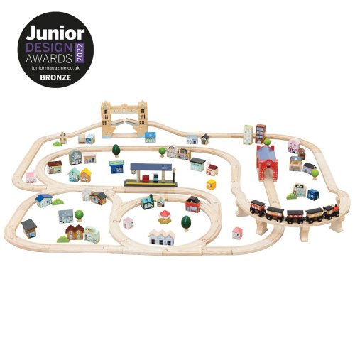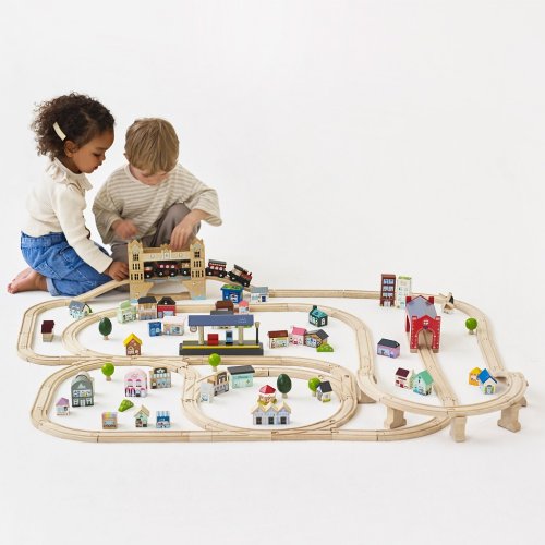 Tato dřevěná vláčkodráha míří do Londýna! Ať představivost dětí volně proudí, díky vláčku poznají celé město a jeho významná místa. Hračka se skládá ze 120 dřevěných dílků, má detailní barevné ilustrace. Zastavte se v kadeřnickém salónu, zverimexu nebo v pizzerii! Vagóny vláčku mají zabudované magnety, lze je jednoduše spojit. Dále v balení najdete koleje, nádraží, mnoho budov a také zvedací most. Tradiční hračky děti vzdělávají formou hry. Vyrobeno z odolného a udržitelného dřeva, malováno netoxickými barvami na bázi vody. Ekologická, bezpečná a interaktivní hračka pro všechny děti. Pomůže také s rozvojem jemné motoriky.Rozšiřte si sbírku o dřevěné vláčky a vláčkodráhy, které jsou kompatibilní s výrobky jiných značek, např. Brio, pro dlouhodobou a unikátní zábavu. Hlavní vlastnosti: v balení 120 dílků – 2 vlaky, koleje, mnoho doplňkůvyrobeno eticky z udržitelného dřevatestováno dle nejpřísnějších standardůmalováno netoxickými barvami na bázi vodypomáhá s rozvojem řeči a sociálních dovednostíinspiruje k představivé hře Auta & stavby: Stavební a motorická kolekce Le Toy Van, která vyhrála mnoho ocenění. Přesněji prozatím přes 15 ocenění za představivá auta a stavební hračky. Podporují dětskou fantazii, jsou ideální k představivé hře, rozvíjí kreativitu a hravě zlepšují dětskou koordinaci ruka‑oko.