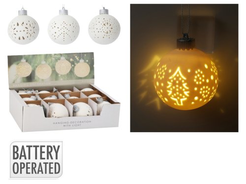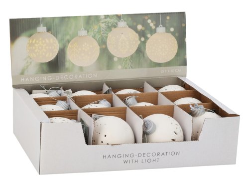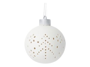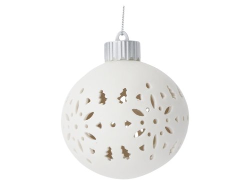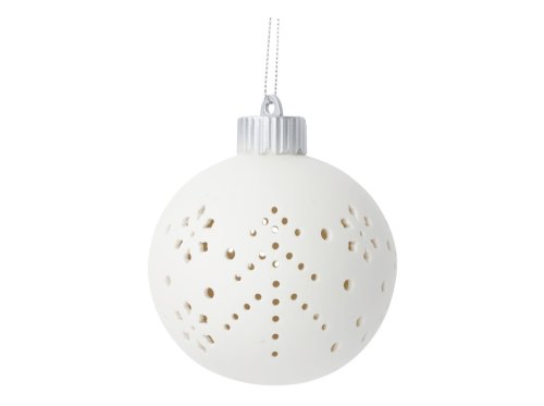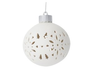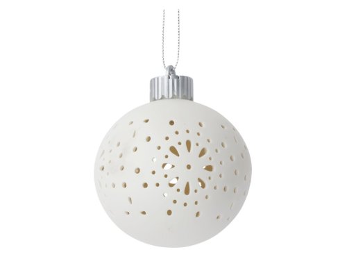 Závěsná dekorační koule, s vyřezanými motivy, v odstínu teplé bílé navodí přjemnou atmosféru.
