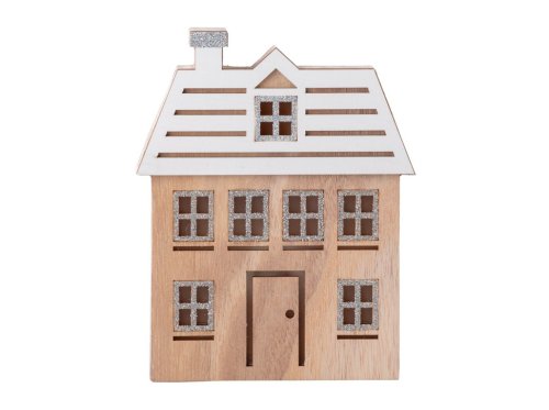 Tento dřevěný LED domeček v přírodní barvě s bílým glitrem je ideální pro stolní dekorace a zimní aranžmá. LED světlo uvnitř vytváří jemné a hřejivé osvětlení, které podtrhuje kouzlo vánočního období. Kompaktní rozměry 130 × 25 × 160 mm umožňují jeho snadné umístění na parapet, poličku či stůl. Domeček dodává interiéru útulný a slavnostní vzhled a je bezpečný alternativou svíčky. Perfektní doplněk pro každou vánoční dekoraci nebo zimní scénu.