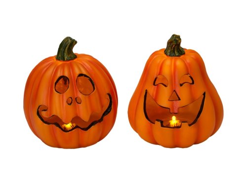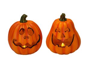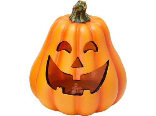 Detailně zpracovaná dýně z pevného polyresinu se zabudovaným LED světlem. Příjemně září teplým světlem a dodá každému večeru kouzelnou atmosféru. Funguje na baterie (nejsou součástí), vhodná pro vnitřní použití.